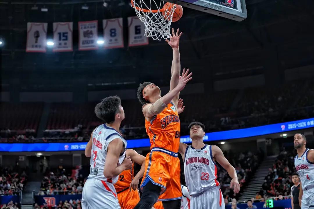 第二节大鲨鱼全力追分,王哲林和洛夫顿的内线双塔不断得分,偰李永炜也投中三分球,比分变成27比32,对手暂停。洛夫顿本节独得17分,上半场结束前带队以47比45成功反超。