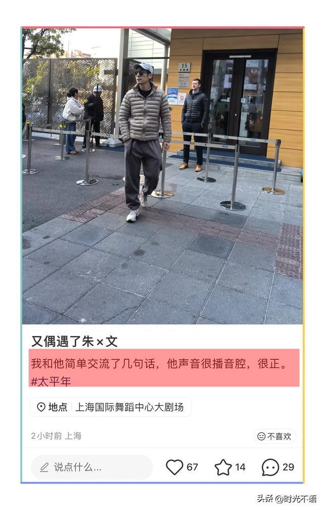 有网友在网上晒出一张照片,在上海国际舞蹈中心大剧场门口竟然偶遇了朱亚文,不得不说这真的是很有缘分!